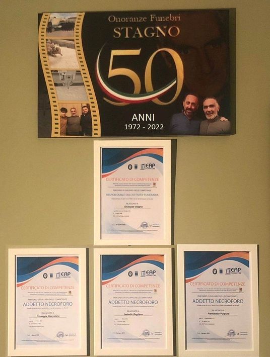 Onoranze Funebri Stagno è al vostro fianco con discrezione e professionalità in uno dei momenti più difficili della vita. Fondata sull'impegno e sulla cura, la nostra Impresa ha celebrato 50 anni di attività nel 2022, un traguardo che testimonia la nostra profonda esperienza e l'attenzione costante alle esigenze della comunità. Offriamo un'assistenza completa per l'organizzazione di funerali, trasporti e cremazioni, operando con rigore nel rispetto delle volontà del defunto e delle normative vigenti. Siamo reperibili 24 ore su 24, 7 giorni su 7, per intervenire con tempestività e supporto totale.